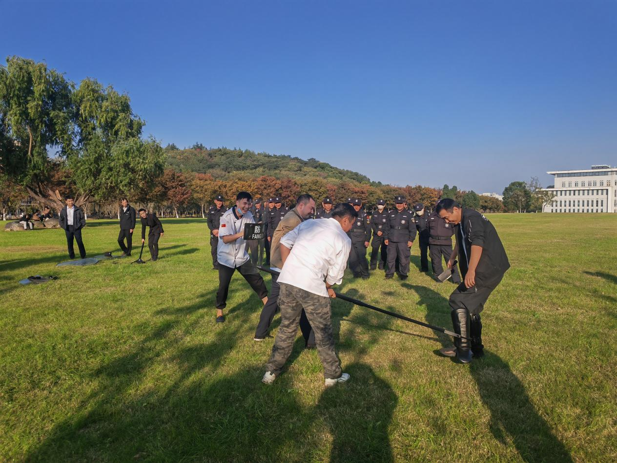 为夯实校园安全防线,提升突发事件应急处置水平,11月5日15:00校保卫处在仙林校区图书馆西侧大草坪组织防暴处突培训。本次培训特别邀请仙林派出所民警张仕军现场指导,保安队员、学生宿舍及办公楼宇物业管理人员、食堂经理员工等关键岗位人员全员参训。