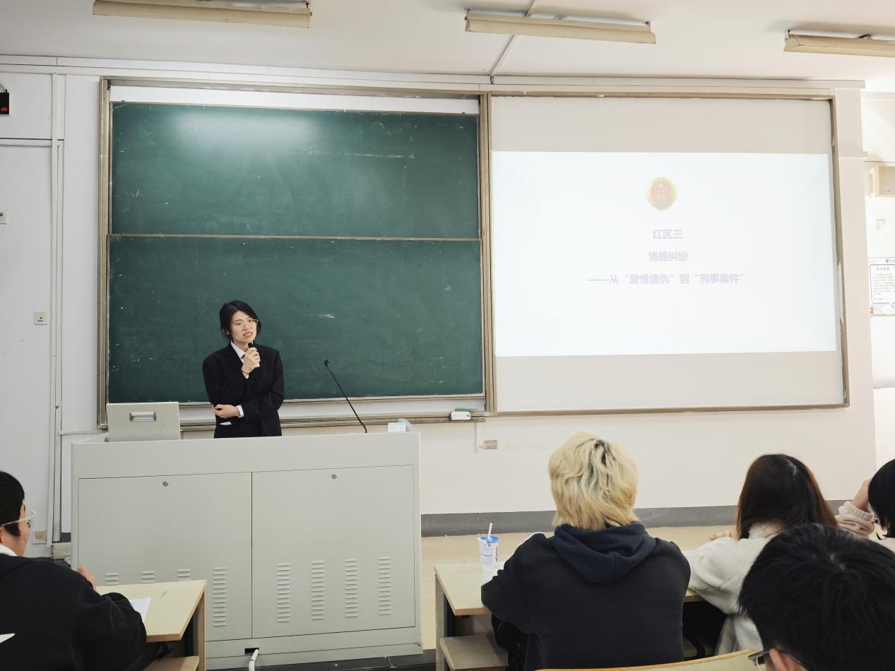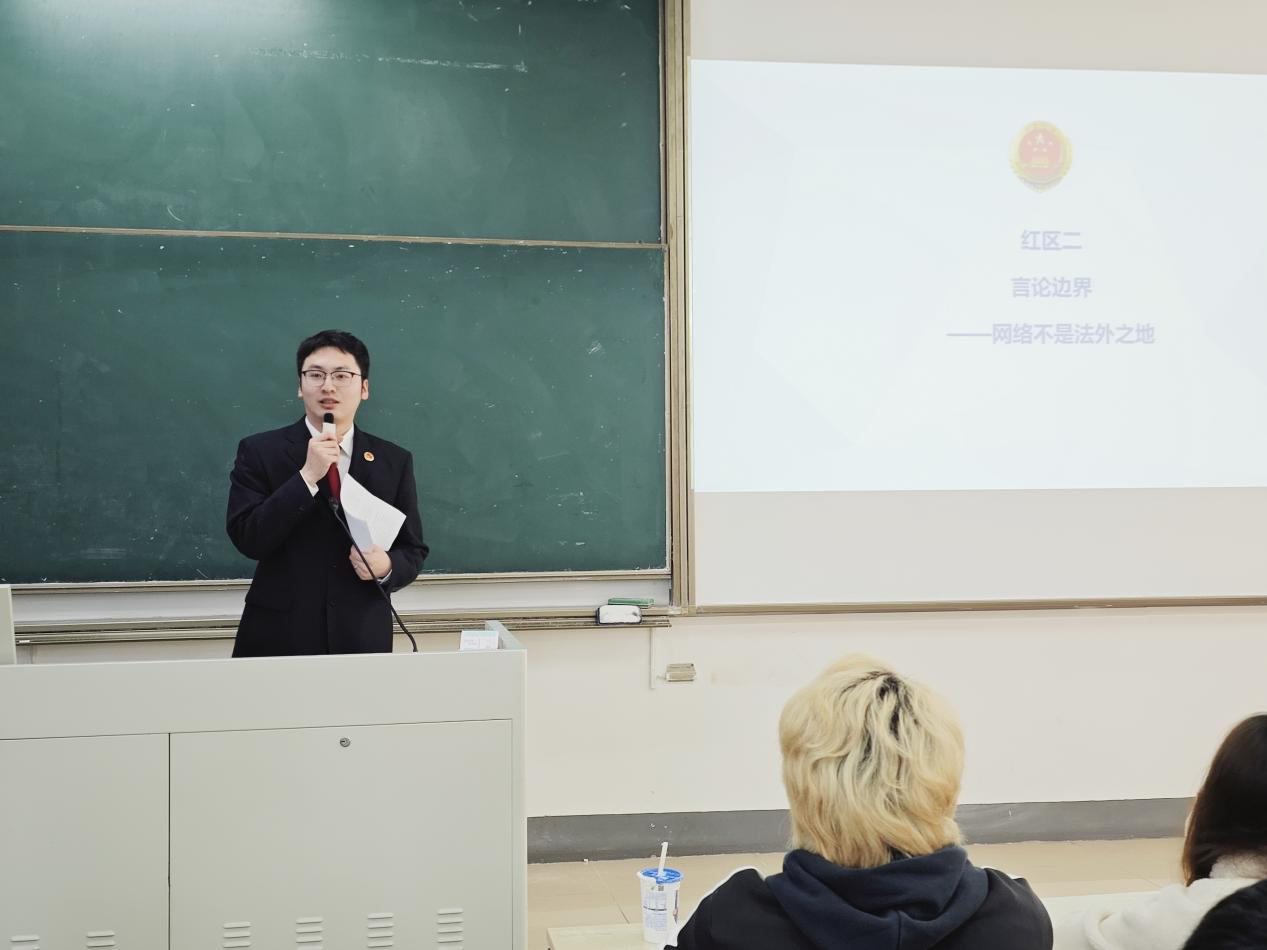 课程伊始,邱晨以南京市鼓楼区检察院工作纪录片导入,展示了检察机关作为“犯罪追诉者、法律监督者、公共利益代表”的职责与担当。在“避坑指南”环节,检察干警聚焦大学生身边的四大法律风险区,结合真实案例进行分析。谢天通过校园盗窃案例解析“青春歧路”;何阳引用“辣笔小球”侵害英雄烈士名誉案,阐明“言论边界”与网络言行责任;龚瑶针对“情感纠纷”演变为刑事案件的情况,通过故意伤害案例予以警示;邱晨则剖析校园贷、套路贷,揭示“金融与消费”陷阱。