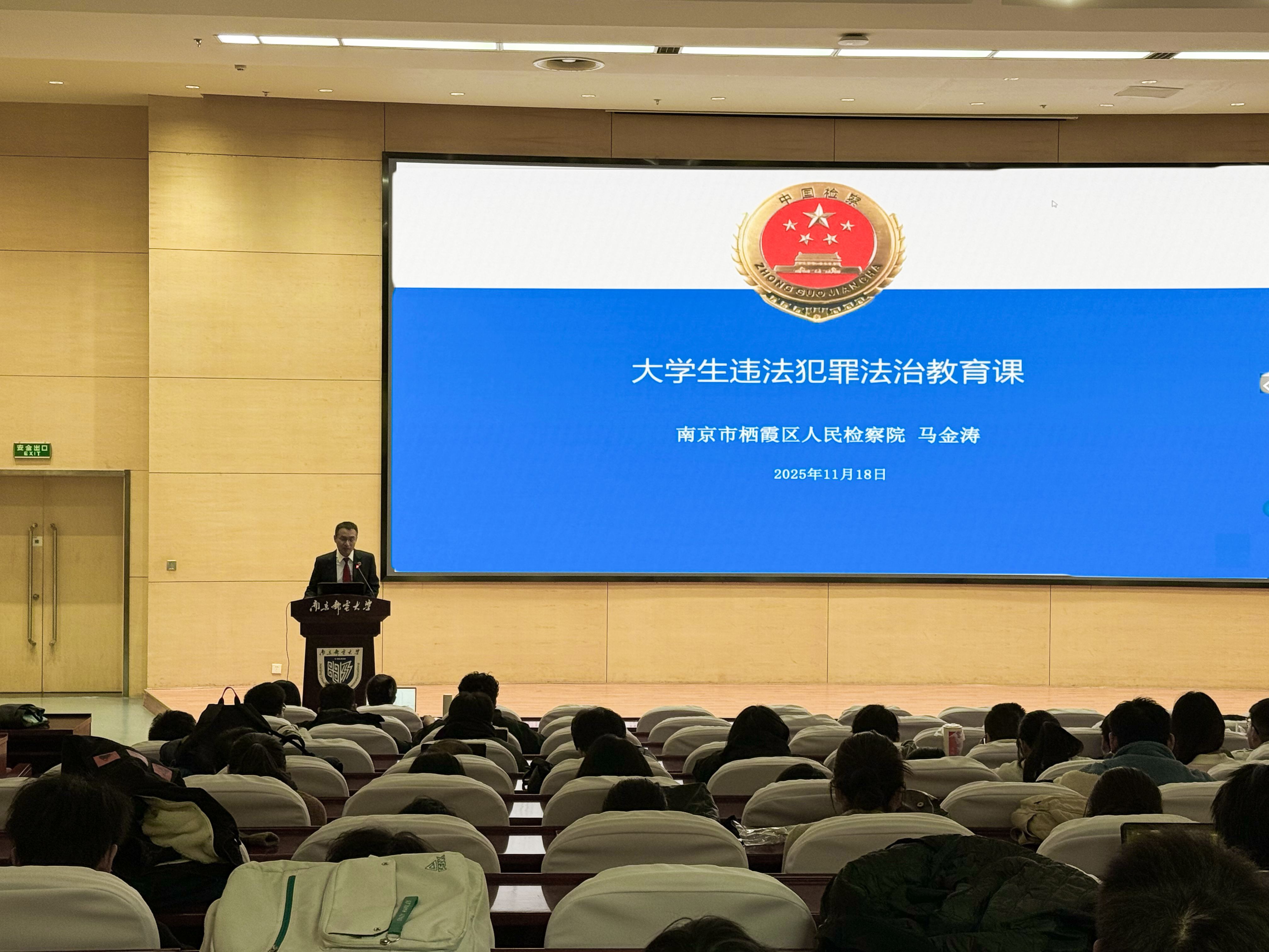 为加强学生法治教育、筑牢校园法治防线,11月18日,材料科学与工程学院特邀学院法制辅导员、南京市栖霞区人民检察院检察官助理马金涛做“大学生违法犯罪法治教育”为主题的法治安全教育专题讲座。讲座从学生违法犯罪的影响、警示教育案例、违法犯罪的预防等多个层面展开。学院党委副书记、副院长吕蔷蔷,分团委书记、2025级研究生辅导员李娜以及2025级研究生新生参加讲座。